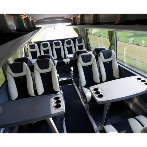 Bent u op zoek naar bepaalde extra’s? Bijvoorbeeld omdat u een buitenlandse delegatie wilt laten vervoeren of voor het vervoer van uw Raad van Bestuur of een Raad van Commissarissen? Onze VIP touringcars zijn naast alle standaard faciliteiten uitgerust met allerlei moderne aanvullingen, waaronder lederen stoelen, luchtvering, audiovisuele mogelijkheden, ruime rondzit, tafels, keukenblok, heteluchtoven, espresso-automaat, mogelijkheden voor Wifi, enzovoorts.