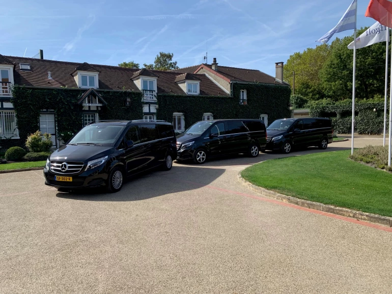 Toen de gasten per jet in Parijs waren geland stonden er drie Mercedes-Benz V (VIP) klasse auto’s met VIP chauffeur van Stuur Chauffeurs klaar om de gasten direct van het vliegveld naar de golfbaan te brengen. Van alle gemakken voorzien konden de gasten bij aankomst op de golfbaan direct van start met hun golfspel. Een heerlijke golfdag volgde en de gasten werden nadien met dezelfde VIP chauffeur naar hun hotel gereden in het hart van Parijs. De golftassen konden zij laten staan en zijn weer opgehaald door de chauffeur van Stuur Transport om deze alvast naar de volgende golfbaan voor de volgende dag te brengen.